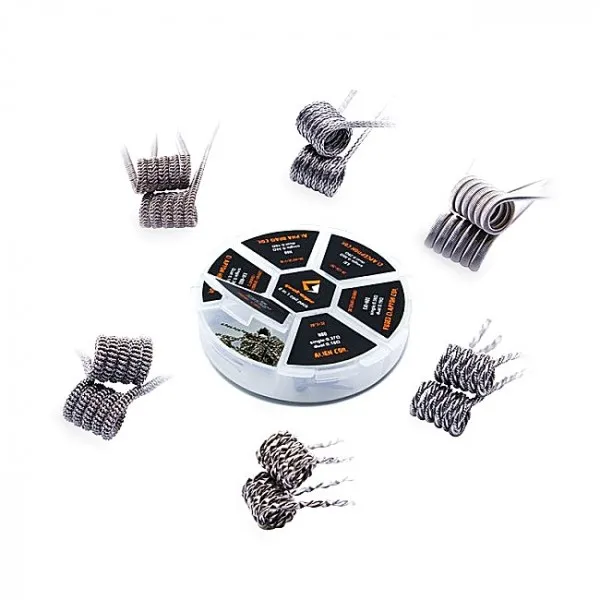 GeekVape 6 in 1 Coil Pack includes 2pcs Alien coil, 4pcs Alpha braid coil, 4pcs Fused clapton coil, 2pcs Clapton helix coil, 2pcs Clapception coil and 6pcs Tidal coil. Buy it as a spare part.